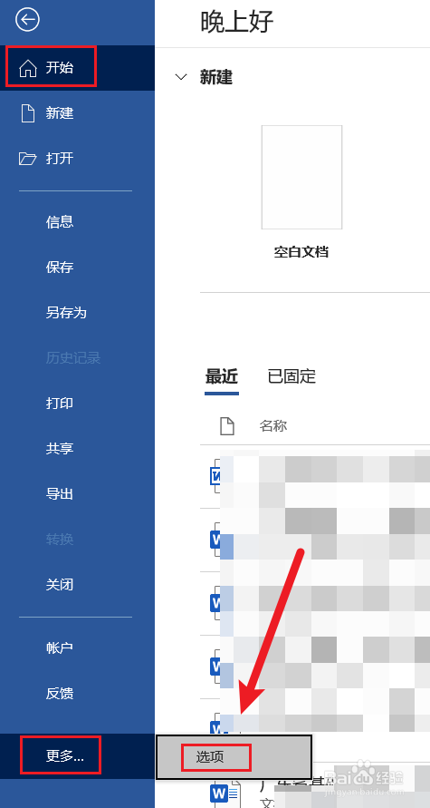 ①点击【文件】-【选项】,打开Word选项窗口。