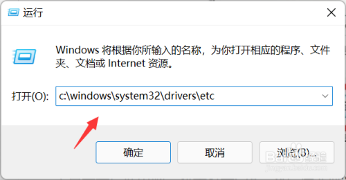 运行中输入c:\windows\system32\drivers\etc回车即可,如下图所示