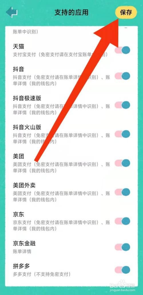 主动记账页面,点击下方的【撑持的应用】,如图箭头所示