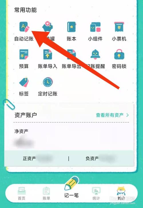 在我的页面,点击常用功效下方的【主动记账】图标,进入主动记账页面