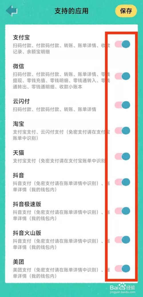 在撑持的应用页面,默认所有应用处于开启状况,按照需要,点击想要封闭的应用的右侧按钮