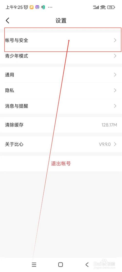 在设置界面中点击“帐号与安全”