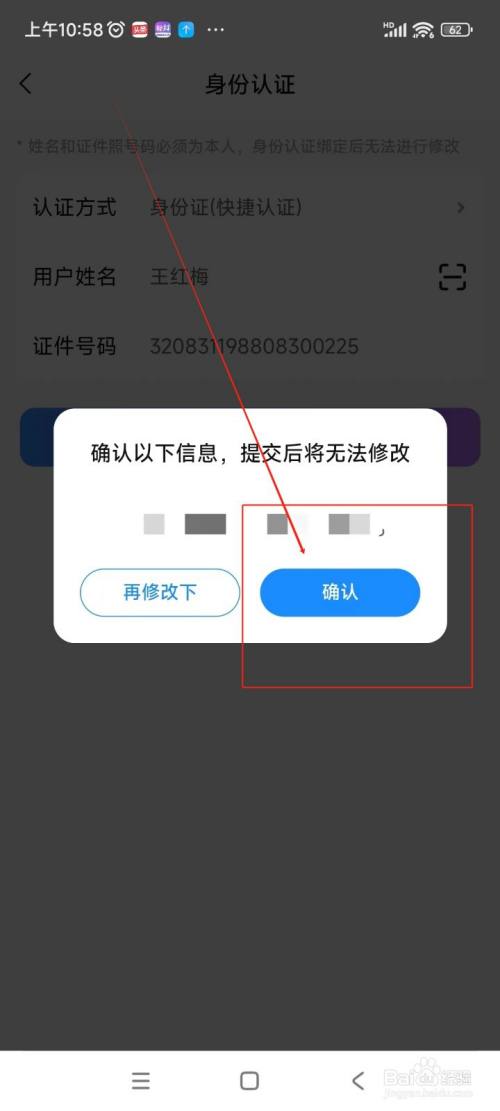 在弹出的小窗口中,再次点击“确认”,即可完当作比心的实名认证操作