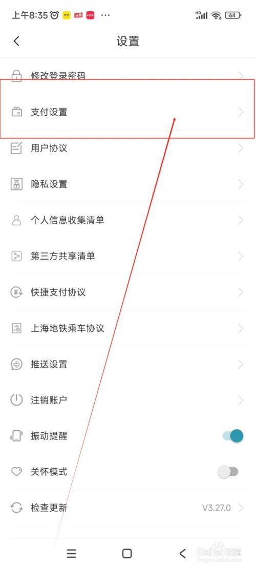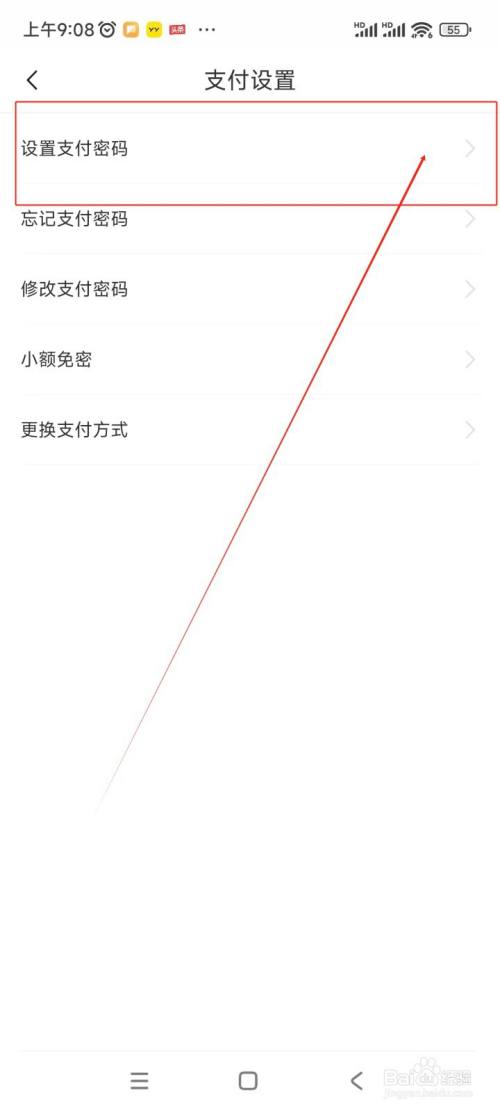 在跳转的支付设置界面中,点击“设置支付密码”右侧的箭头