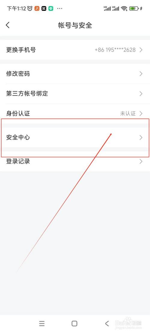 在跳转的帐号与安全界面中,点击“安全中间”