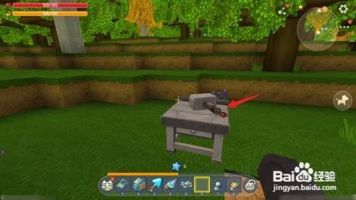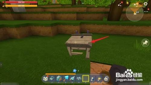 步调六;拿着石质创造锤右击空工匠台,组合完备的工匠台。