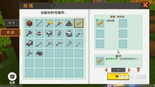步调二;在背包中将杂草建造当作绳索。