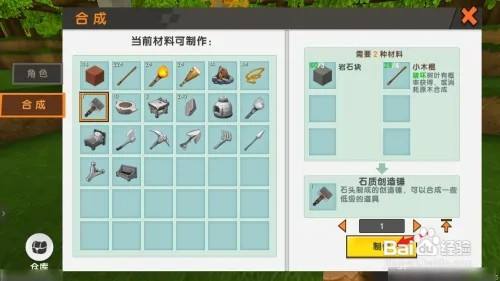 步调五;耗损小木棍和岩石块建造石质创造锤。