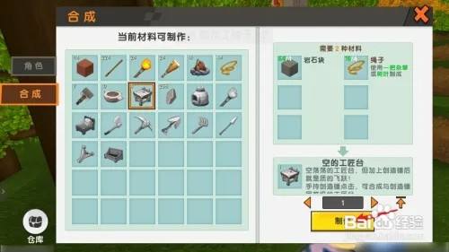 步调三;耗损绳索和木棍,在背包中建造空的工匠台。