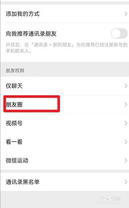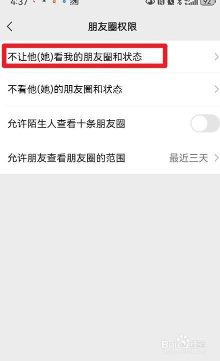 在朋友圈设置界面下,找到不让他看我的朋友圈和状况功效,点击打开