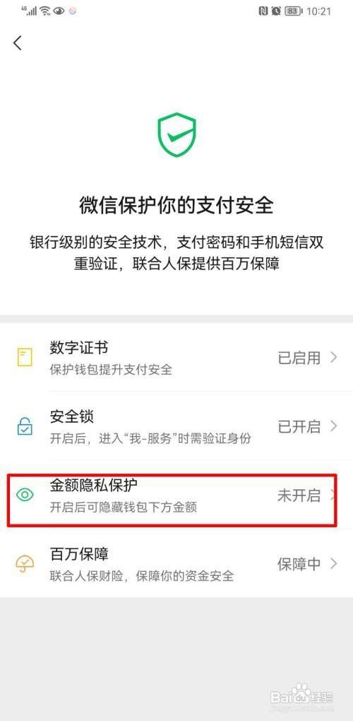 点击金额隐私掩护。默认是未开启状况。