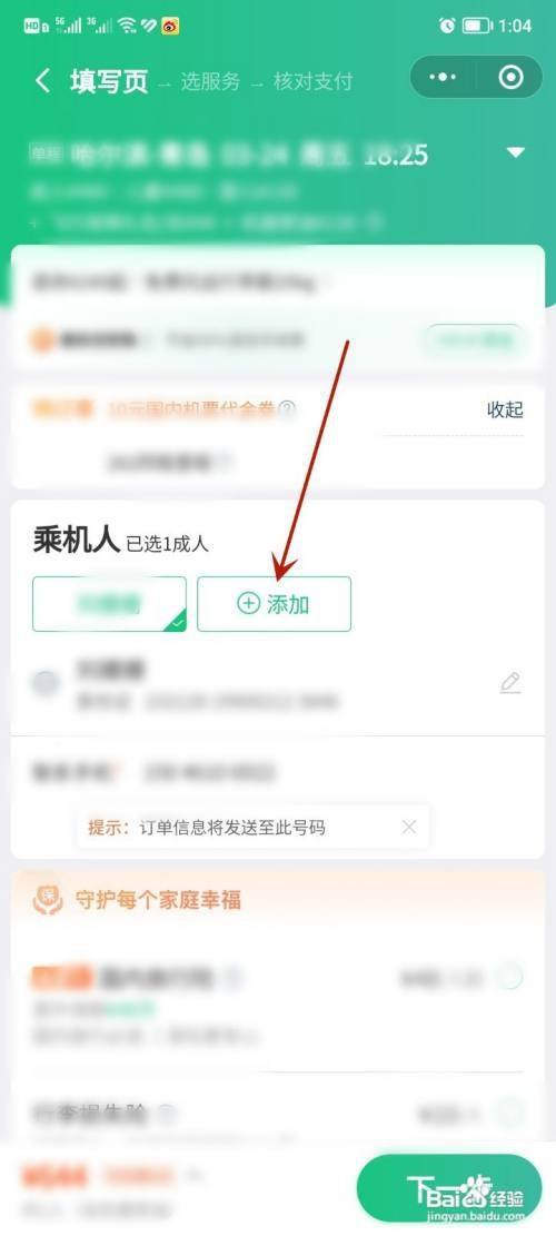 在订单填写页面,点击添加乘机人功效。