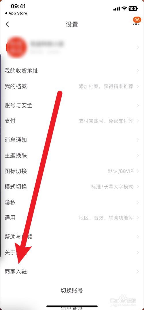之后在设置里,点击下面的商家入驻。