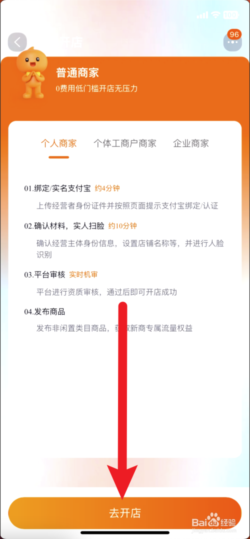 最后在平凡商家界面, 点击底部的去开店即可。