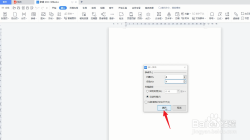 在窗口中选择表格的行与列,点击"确定"即可天生。