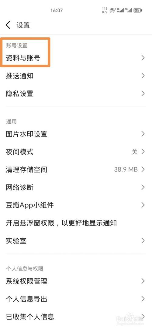 接下来在设置页面,点击资料与账号,