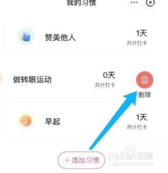 选择需删除的打卡标的目的左滑动。