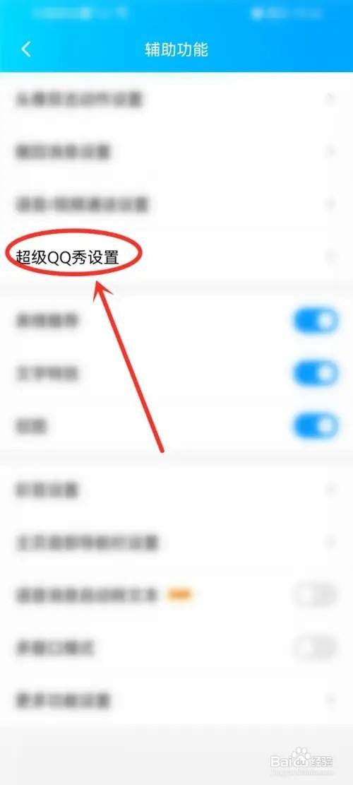 进入辅助功效页,点击"超等QQ秀设置"选项。