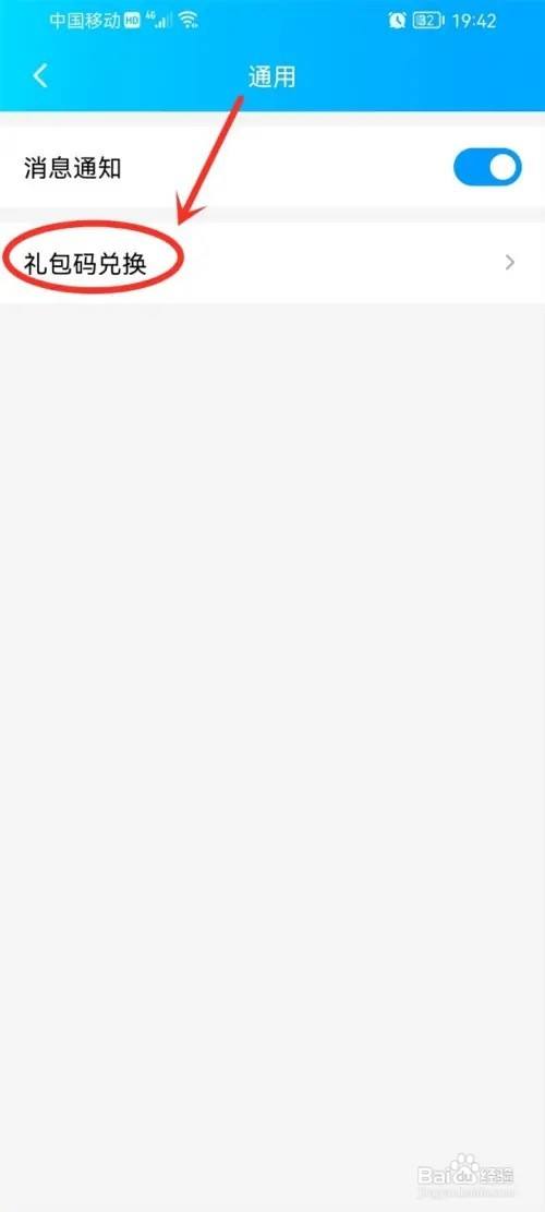 进入通用页,点击"礼包码兑换"选项。