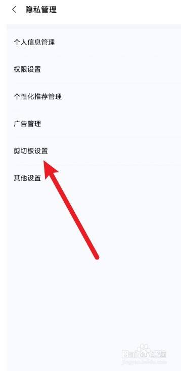 进入隐私办理页面,点击【剪切板设置】