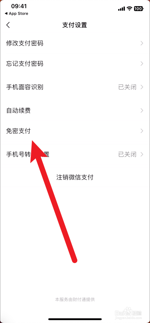 然后在支付设置里,点击免密支付。