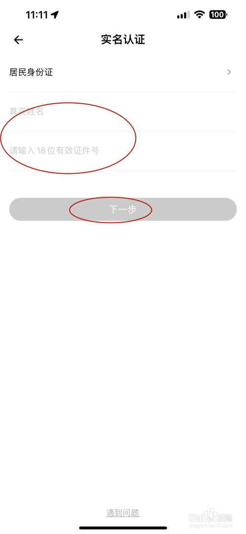 进入实名认证的页面输入信息点击【下一步】按钮;