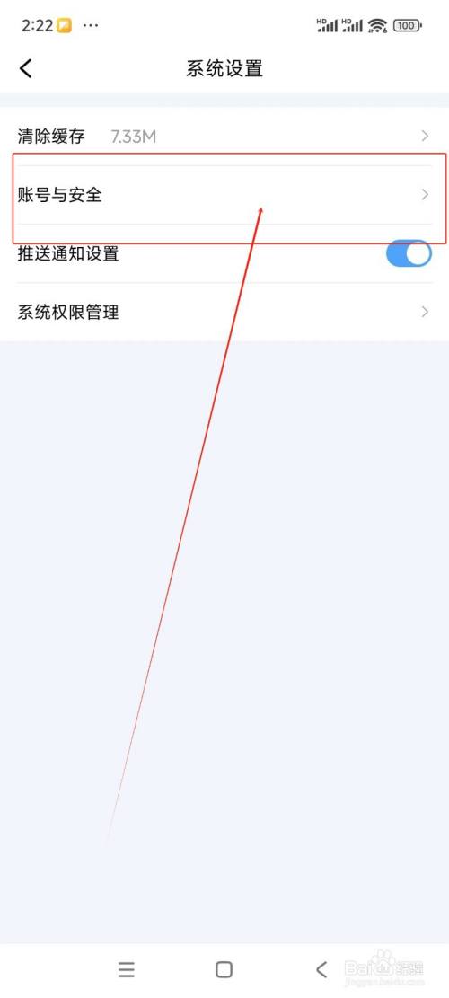 在体系设置界面中点击"账号与安全"