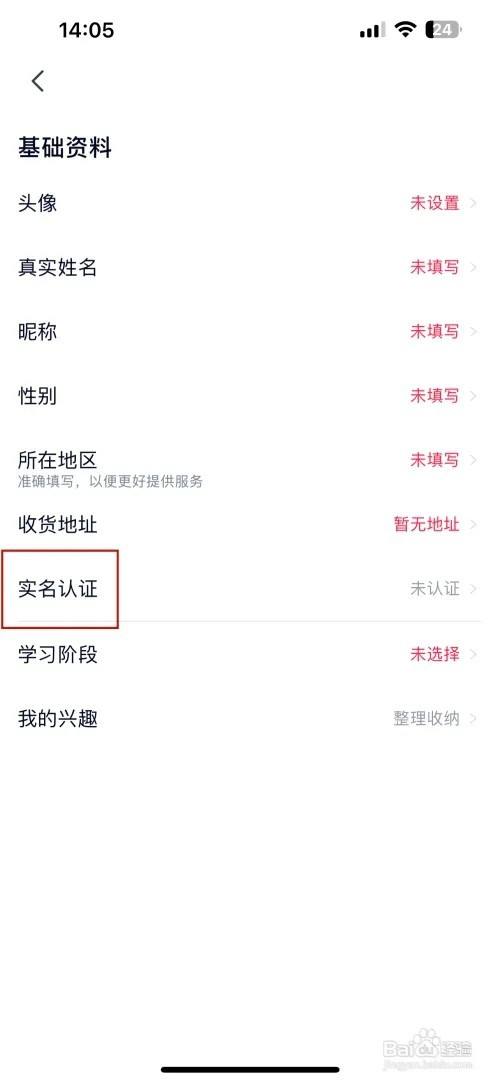 打开基础资料的界面点击实名认证选项,