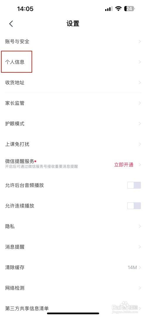 打开设置的界面点击个人信息选项,
