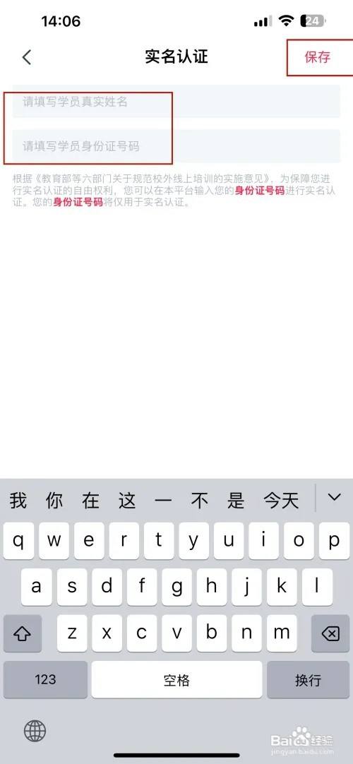 打开实名认证的界面填写信息点击生存选项