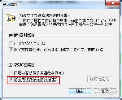 勾选【加密内容以便掩护数据】;