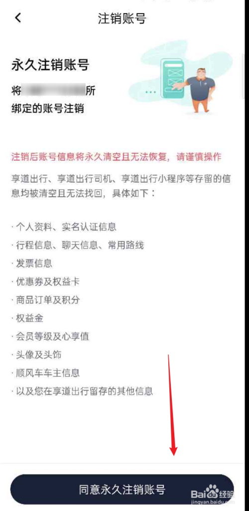 进入到新界面后,点击底部的赞成永世刊出账号按钮。