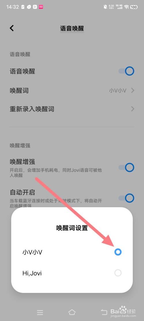 在跳出的弹框内,选择叫醒词。