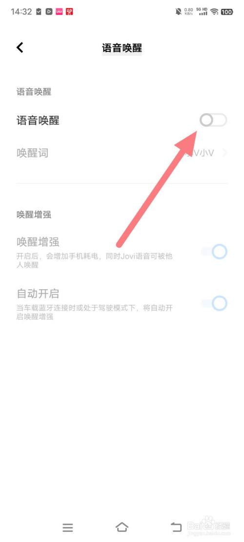在语音叫醒处,点击右侧白色按钮。