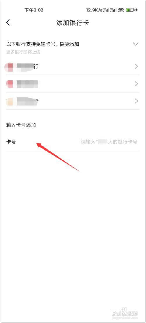 第六步,在添加银行卡功效中输入银行卡即可添加