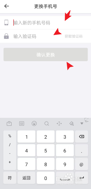 进入到新界面,输入新手机号,获取并输入验证码,点击确认改换按钮,即为修改完毕。