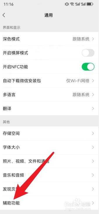 进入通用设置页面,点击辅助功效