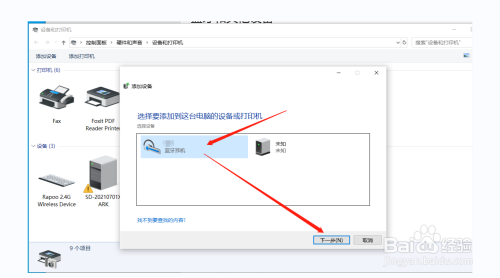已经搜刮到蓝牙耳机,单击选择它,并"下一步",体系会主动毗连