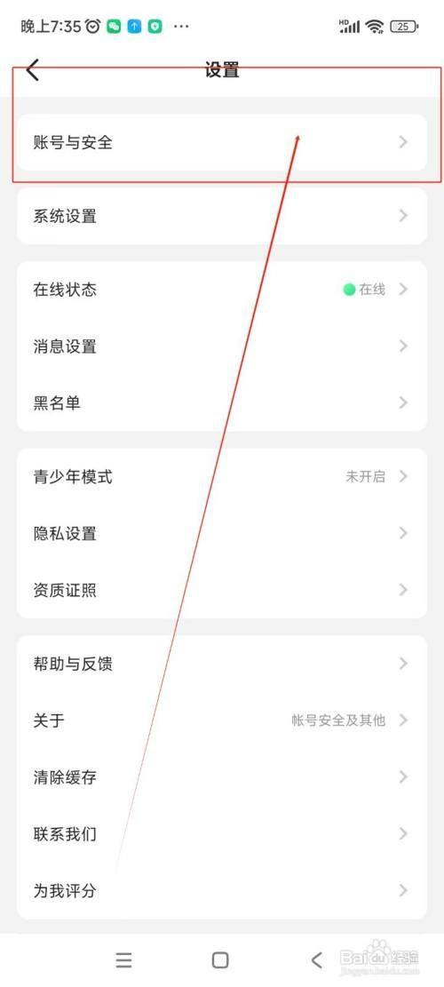 点击账号与安全。