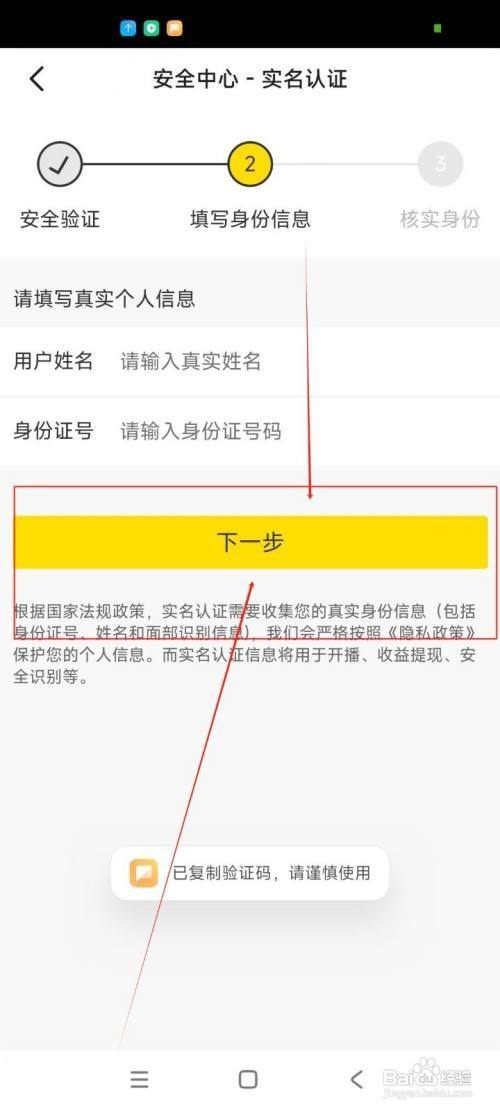 输入姓名、身份证号等信息,点击下一步即可。