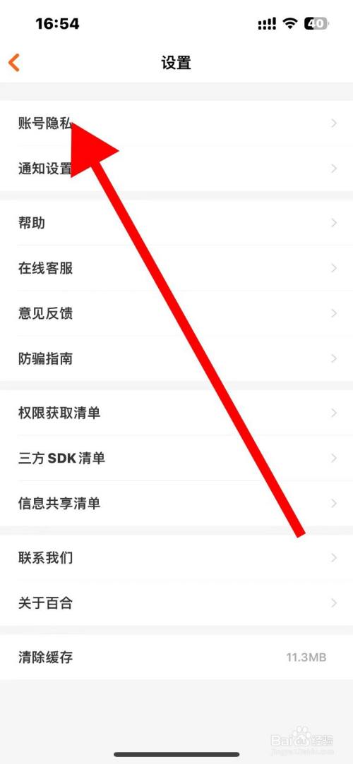 第二步,进入设置页面,点击账号隐私