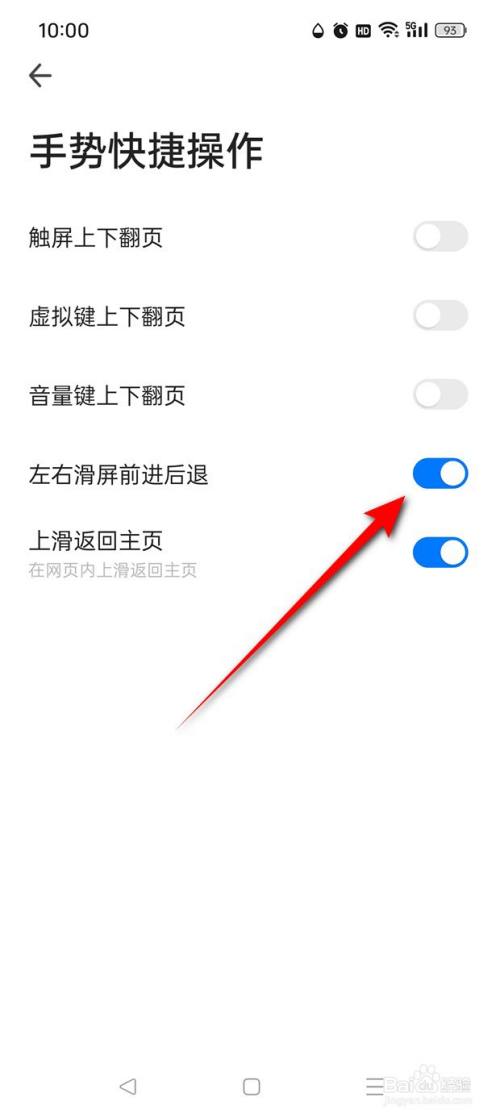 将"摆布滑屏进步撤退退却"旁的小滑块点亮即可开启。