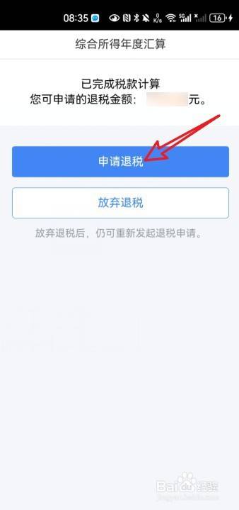 在弹出的声明对话框点击确认后,点击【申请退税】选项。