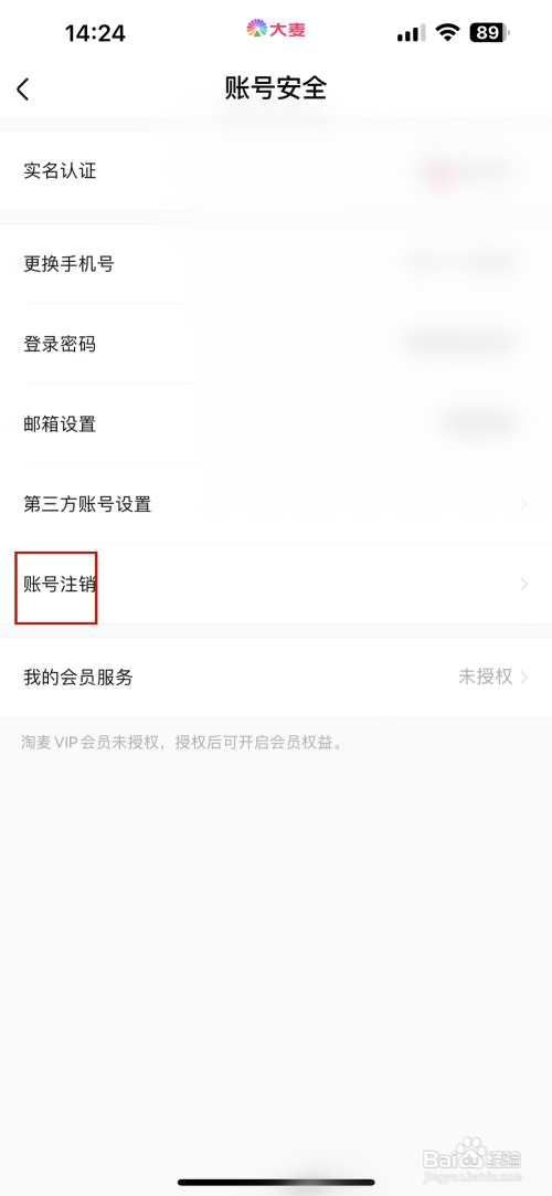 打开账号安全的界面点击账号刊出选项,