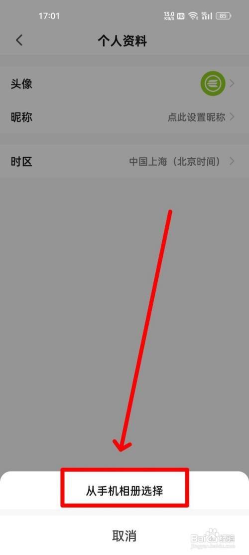 步调五,点击"从手机相册选择"。