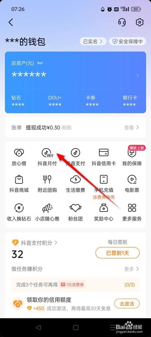 点击"抖音月付"图标。