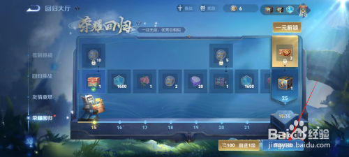在荣耀回归运动界面,点击【获取经验】,完当作使命即可得到经验。