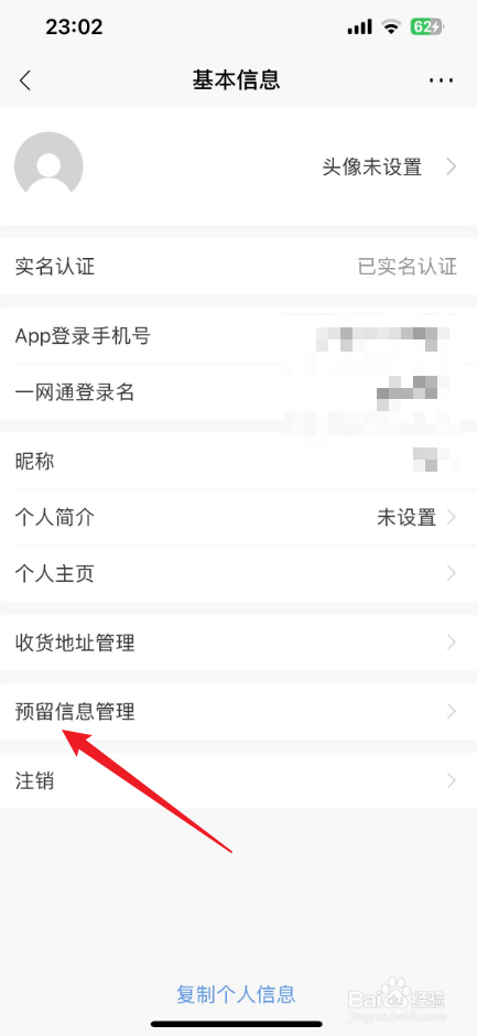 进入到基本信息界面,点击"预留信息办理"。