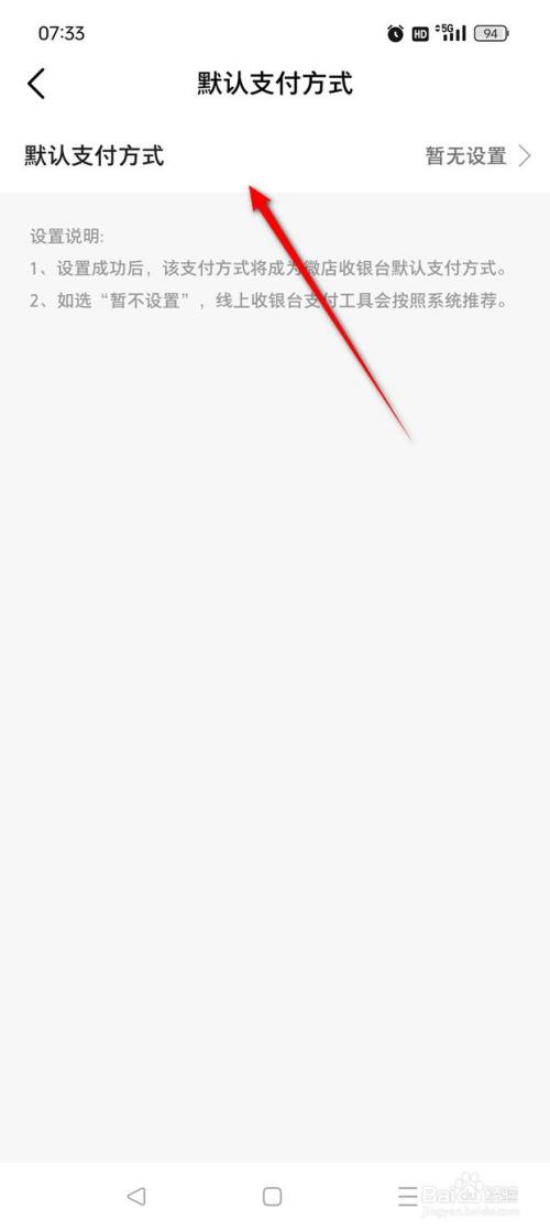 点击"默认支付方式"。