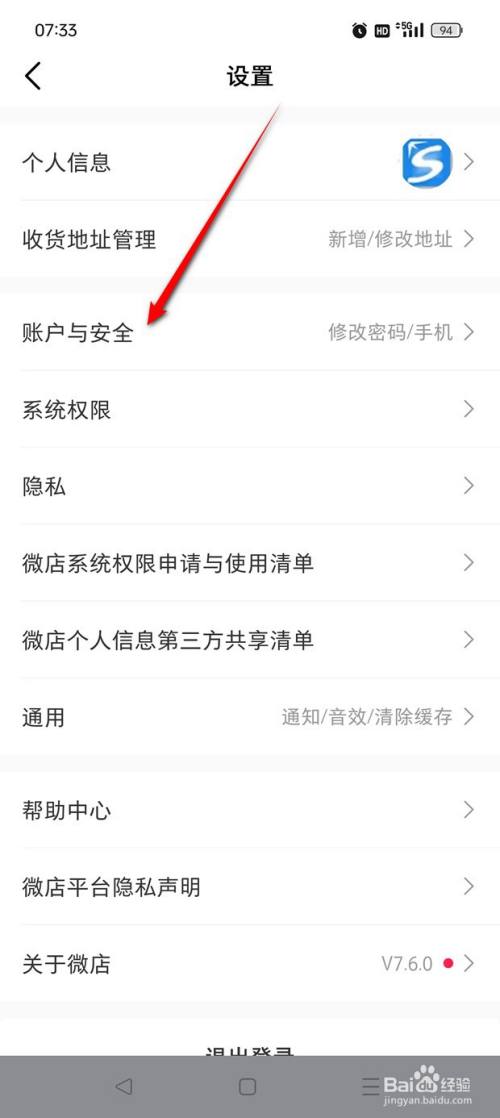 点击"账户与安全"。